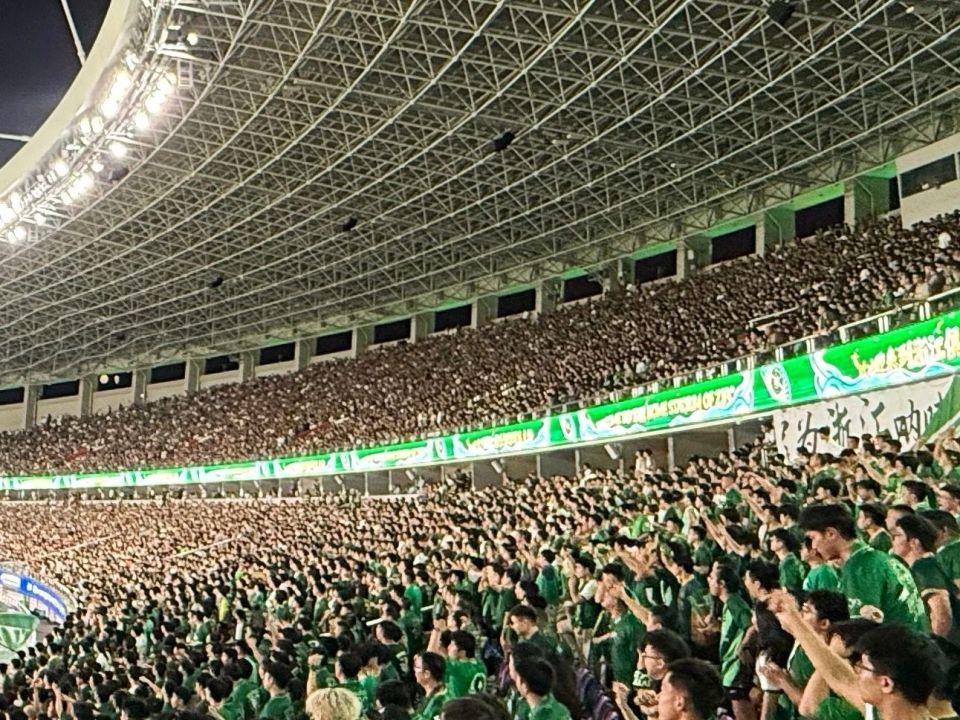 将黄龙的看台变成了一片绿色的海洋